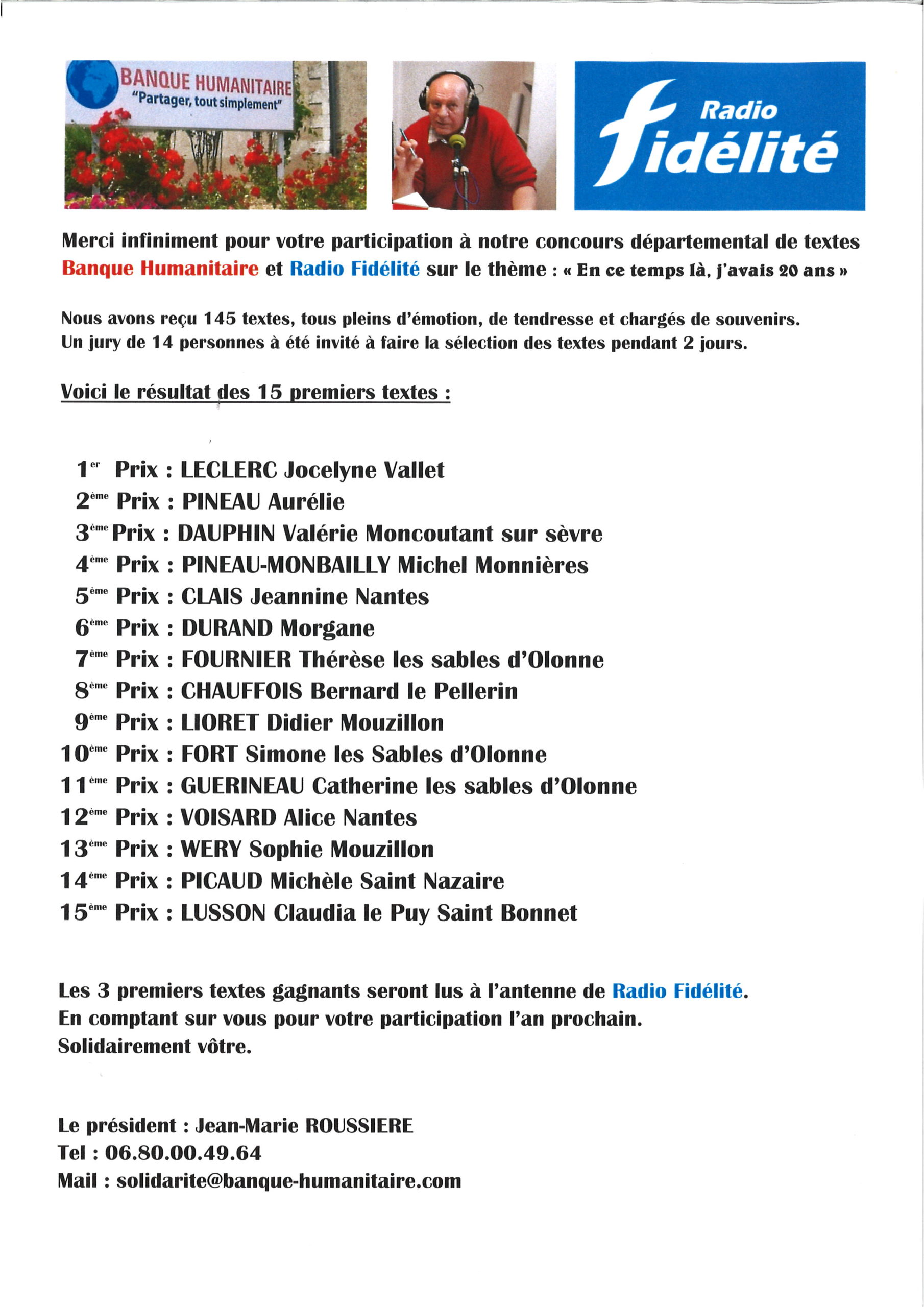 Image précédente Image suivante les gagnants jpeg Les grands gagnants du concours de textes « En ce temps là, j’avais 20 ans »